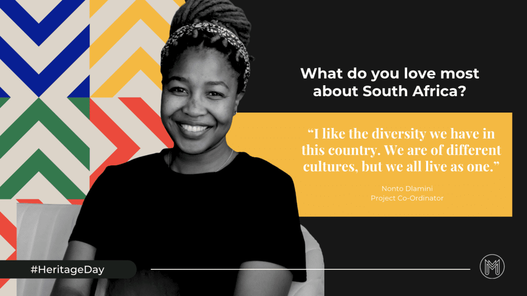 This Heritage Day, we asked our team to share what being South African means to them, what they love most about our country, and how they view this celebration. Their reflections highlighted the richness and diversity of our shared heritage – from the spirit of ubuntu to the joy of food, music, and family traditions.