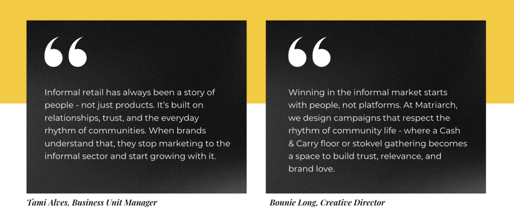Forward-thinking brands now see the informal retail sector as a growth powerhouse, not a side channel. Many are engaging through community-based activationsbulk-buy promotions, and wholesale loyalty initiatives.