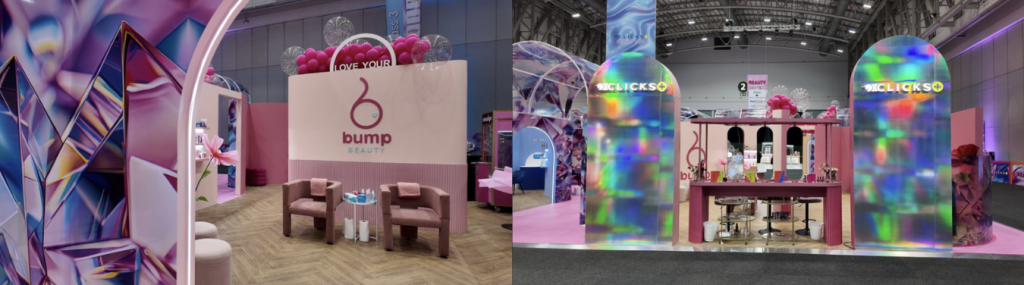 The stand came to life as a glowing, iridescent environment, combining soft pastels, fluid textures, and sculptural forms to create a standout presence on the floor.